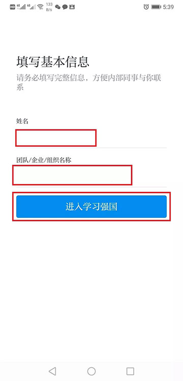6、填写“真实姓名和单位”即可进入“学习强国”→完成注册。