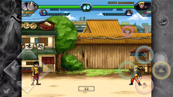 采用街机式横版格斗玩法,玩家通过虚拟摇杆控制移动,配合攻击、技能、跳跃、防御等按键组合释放连招。游戏支持普通攻击衔接技能、浮空追击、防御反击、瞬步/替身术闪避等进阶操作,打击感扎实,连招流畅,格斗体验硬核爽快。