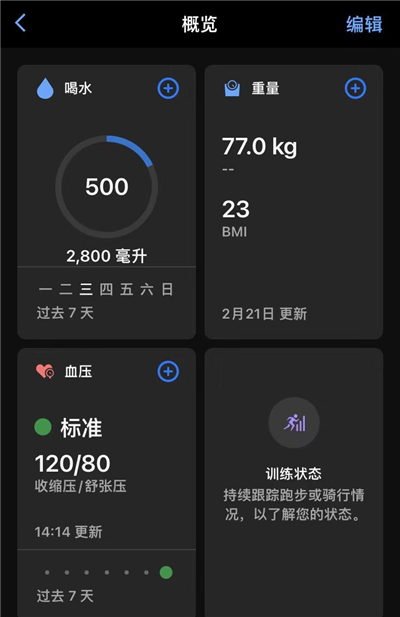 2、健康指标监测:包括静息心率、血氧饱和度(SpO2)、呼吸频率、经期追踪、水分摄入等。