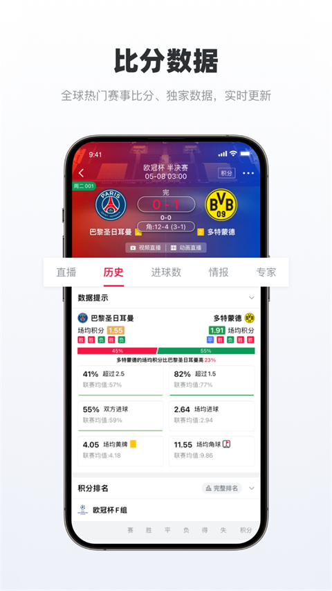 2、毫秒级比分直播:依托高清卫星信号传输技术,软件能够提供超快、超准的比分更新。无论是英超、欧冠还是中超,关键事件的推送延迟极低,让用户观赛体验流畅无卡顿。