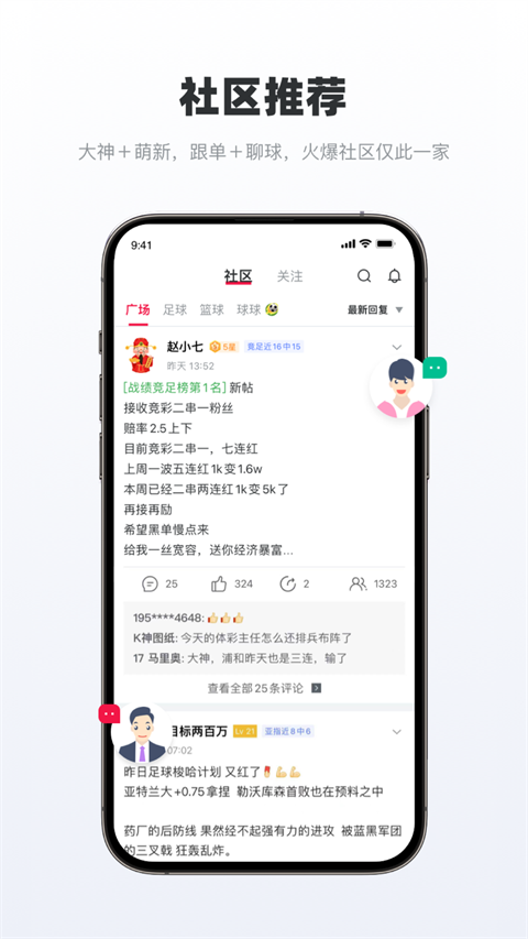 3、百万球迷社区:软件内置了大型体育互动社区,汇聚了众多职业高手与资深球迷。用户可以在社区内交流观点、分享情报,形成良好的互动生态。