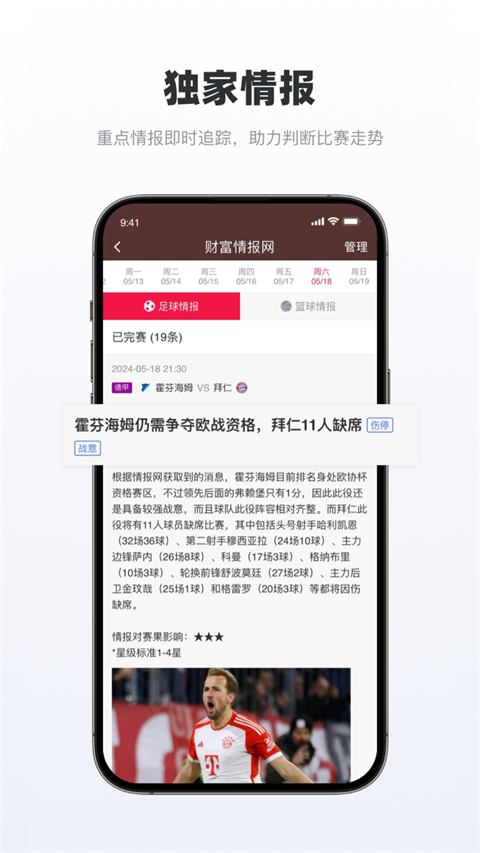 1、独家情报矩阵:作为国内少数同时与多家国外专业情报机构合作的平台,《足球财富》每天从海外获取第一手赛事信息,并经过数百位资深体育编辑的筛选与整理,确保用户能在第一时间掌握最核心的赛前动态。