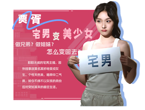 默默无闻的宅男主播,因外挂事故莫名其妙地变成女生。个性天然呆,略带中二气质,如今不得不以女孩的身份应对突如其来的疯狂生活。