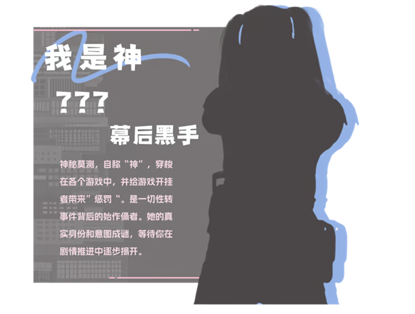 神秘莫测,自称“神”,穿梭在各个游戏中,并给游戏开挂者带来”惩罚“。是一切性转事件背后的始作俑者。她的真实身份和意图成谜,等待你在剧情推进中逐步揭开。