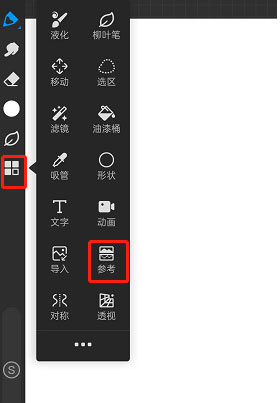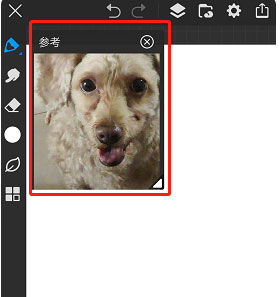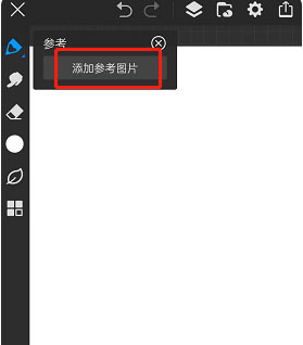 2、点击后画布左上角会弹出【参考】小界面,选择【添加参考图片】功能。