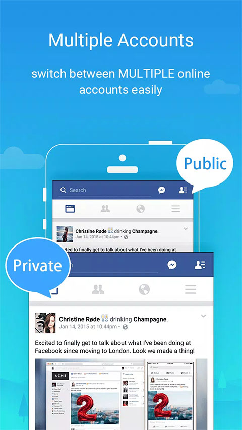 平行空间是一款基于虚拟化技术打造的应用多开与隐私保护工具。它能在您的设备上创建一个独立的虚拟空间,让同一款应用以两个完全隔离的账号同时运行,有效区分工作与生活数据,并为敏感应用提供安全隐蔽的运行环境,实现一部手机、两个平行世界的高效管理。作为一款基于虚拟化技术打造的应用多开与隐私保护工具,无论是社交账号双开、游戏多角色管理,还是重要应用隔离保护,它都能以简洁、可靠的方式,满足您的多元需求。