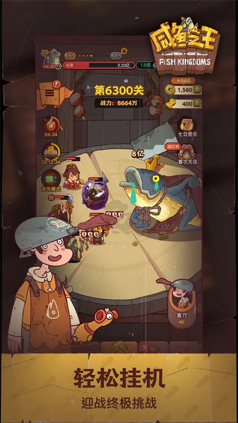 2、魔性画风,恶搞无极限:游戏美术风格独树一帜,角色并非传统帅哥美女,而是造型各异的“咸鱼”。从穿着草裙的吕布鱼、拿着扇子的诸葛亮鱼,到各种恶搞的现代装备鱼,每一个角色都自带幽默基因,战斗过程充满令人捧腹的细节。