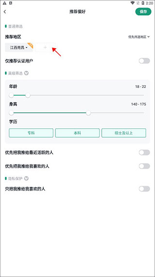 2、在这个界面的推荐地区下面点击加号。