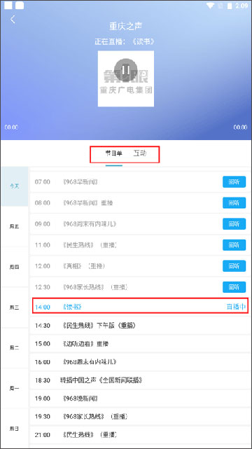 2、根据左边的周期来选择你要收听的广播节目就可以了。