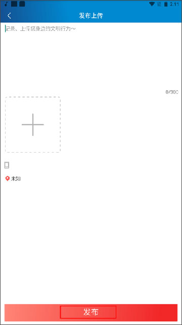 3、记录或上传您身边的文明行为/不文明行为,最后点击发布按钮就可以了。