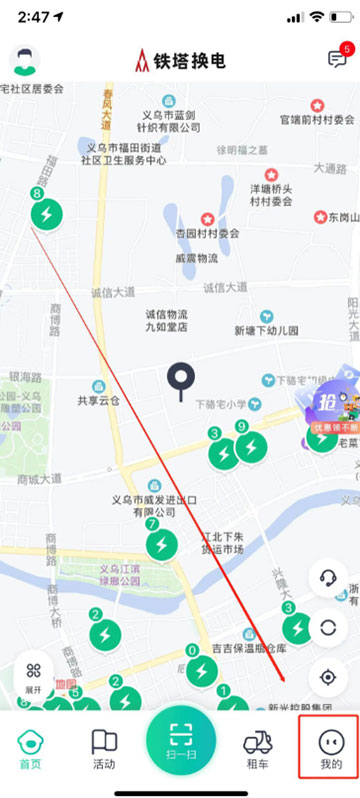 通过地图一目了然查看附近的换电站,点击换电站一键导航轻松到达。