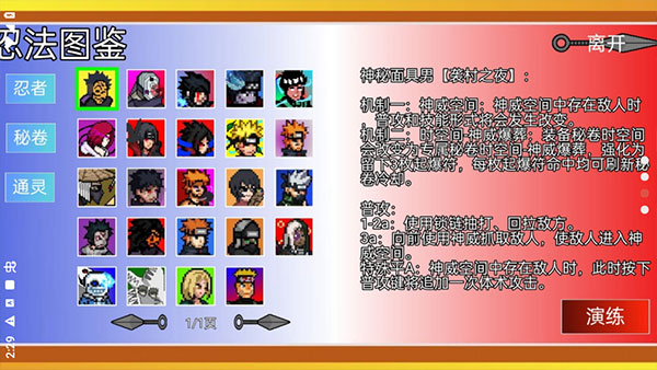 1、 原作风暴:完美还原鸣人、佐助、宇智波斑等数十位经典忍者的标志性忍术与奥义,如螺旋丸、千鸟、须佐能乎等,技能特效在像素风格下依然极具张力。
