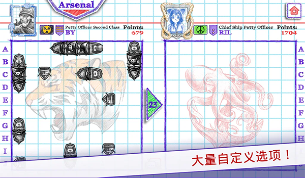 所有棋子、舰船尺寸均通过游玩解锁,无抽卡或强化系统,胜负仅取决于预判、记忆与心理博弈。