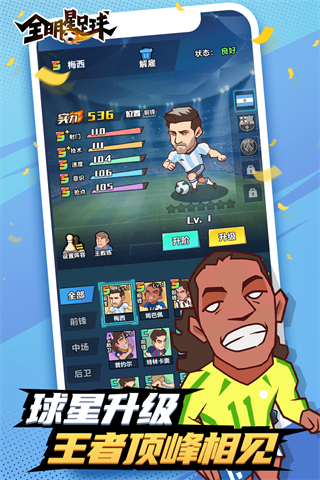 全明星足球破解版是一款集策略、经营与休闲乐趣于一身的Q版足球手游。游戏以轻松可爱的美术风格呈现,玩家将化身俱乐部经理,通过招募球星、培养阵容、制定战术,带领自己的球队征战绿茵场。无论是策略布阵的深度,还是模拟经营的成就感,亦或是轻松上手的休闲体验,都能在这里找到乐趣。