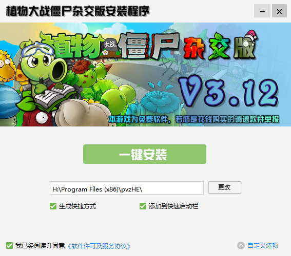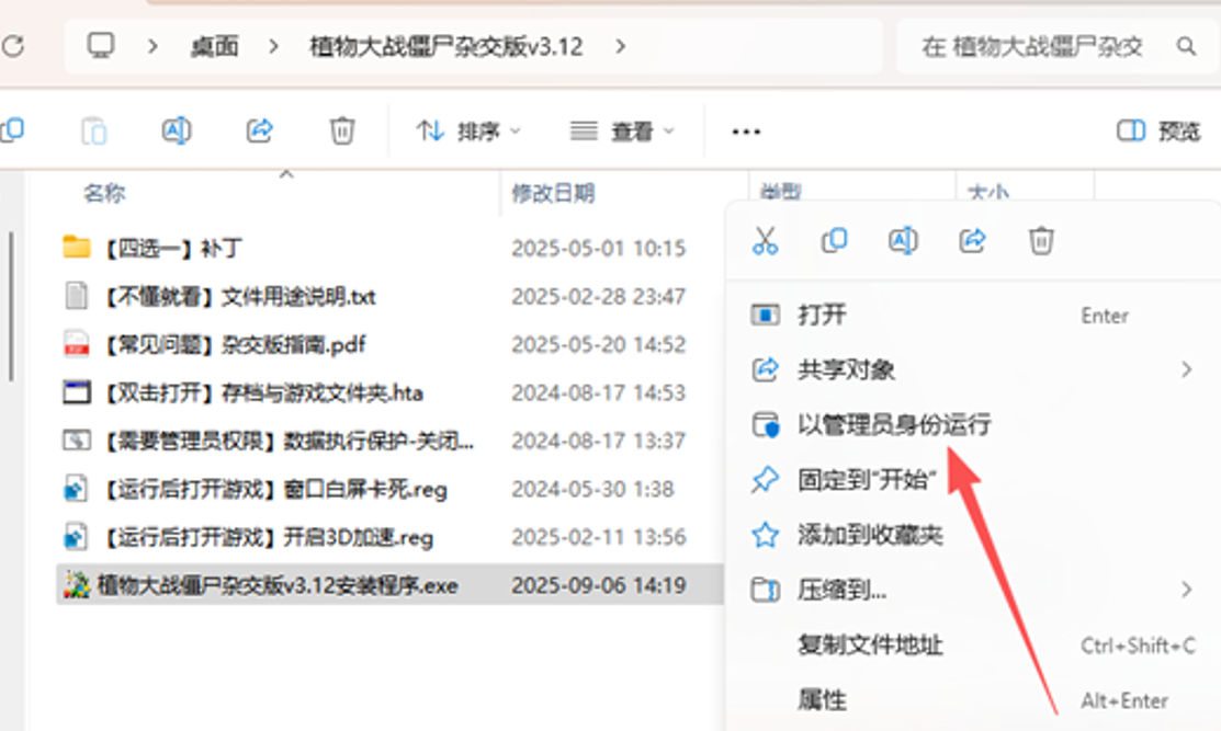 1、进入文件夹,以管理员身份运行“植物大战僵尸杂交版v3.12安装程序.exe”程序;