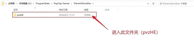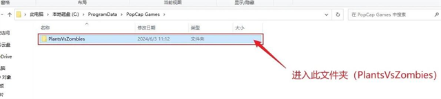 3、找到PopCap Games 文件夹,打开进入找到Plants VSZombies文件夹
