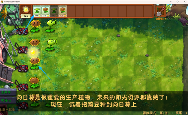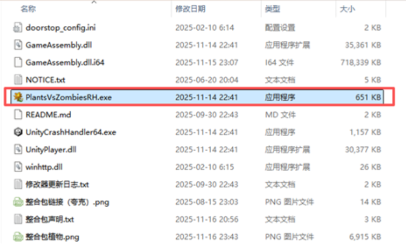 1、进入下载解压好的文件夹,运行“PlantsVsZombiesRH.exe”程序(初次进入游戏需要耐心稍等加载)