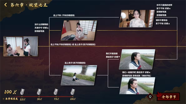 本游戏探索度100%≠解锁全剧情,有隐藏线索(即记忆碎片)或人物写真缺失可以按照游戏内提示去对应章节寻找。