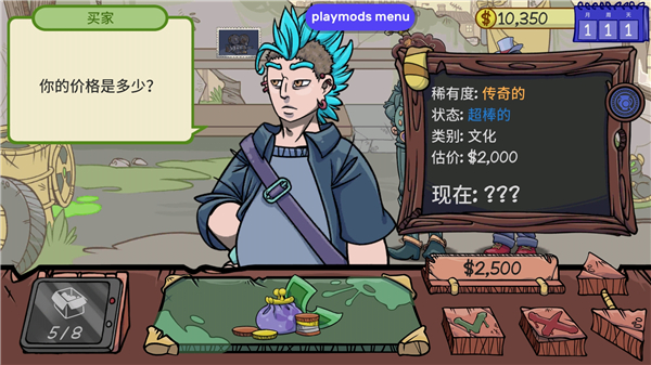 与顾客的讨价还价是一场心理博弈。每个顾客都有不同的性格(如易怒、固执、友好),你需要根据他们的情绪和出价,灵活运用“压价”、“抬价”、“羞辱报价”等选项来达成交易。