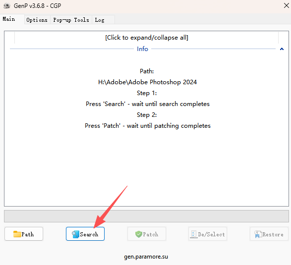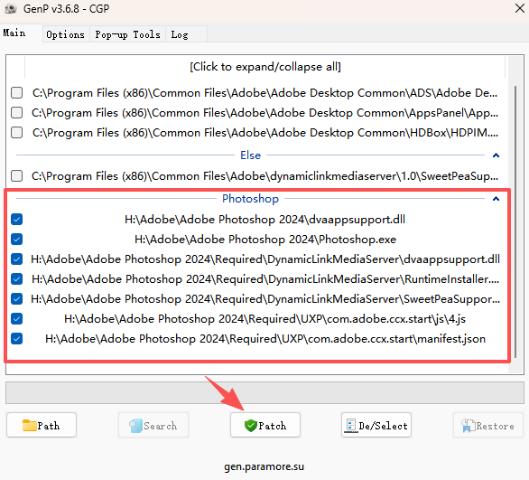 9、完成后便可以看到需要激活的Photoshop 2024版本,随后点击Patch进行激活;