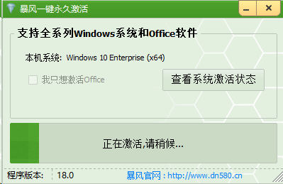 暴风激活工具支持一键永久离线激活win7系统、win8系统、win8.1系统、win10系统以及各系列Office软件,用户只需通过一个按钮就能实现永久完美离线激活。
