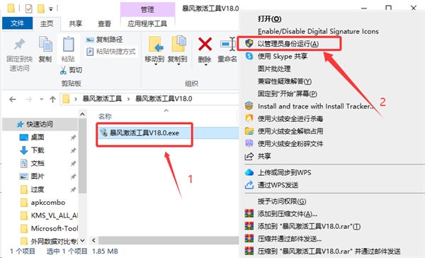 1、以管理员身份运行“暴风激活工具V18.0.exe”