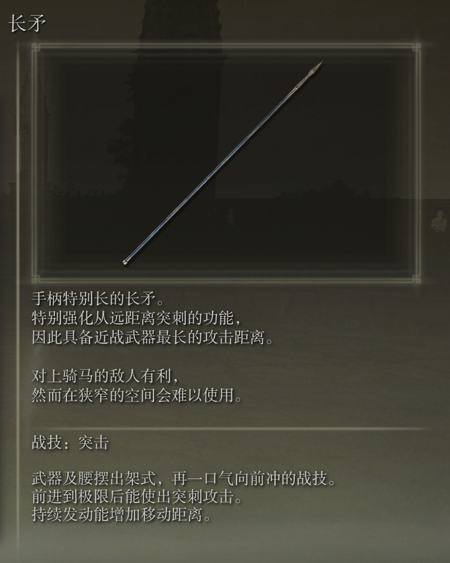 一种长距离刺入武器,可用于从盾牌后面进行攻击。