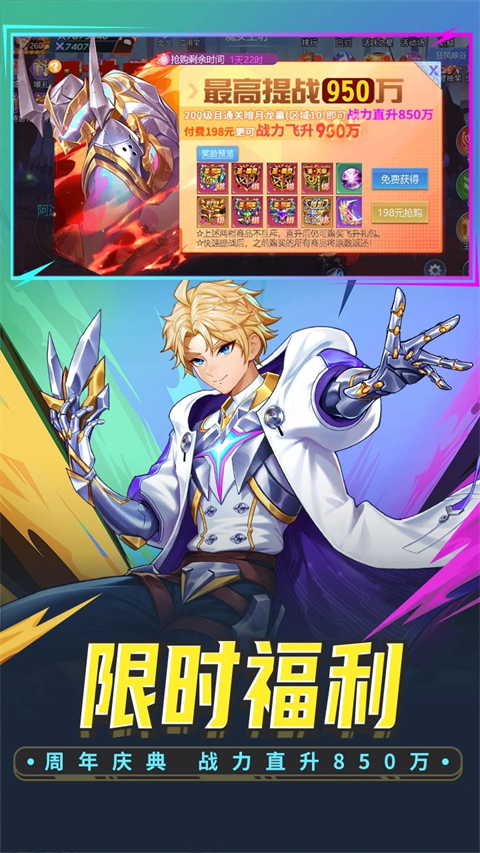 4、人实时共斗:支持3人组队挑战巨型世界Boss、参与公会战、竞技场PVP,强调配合与策略。
