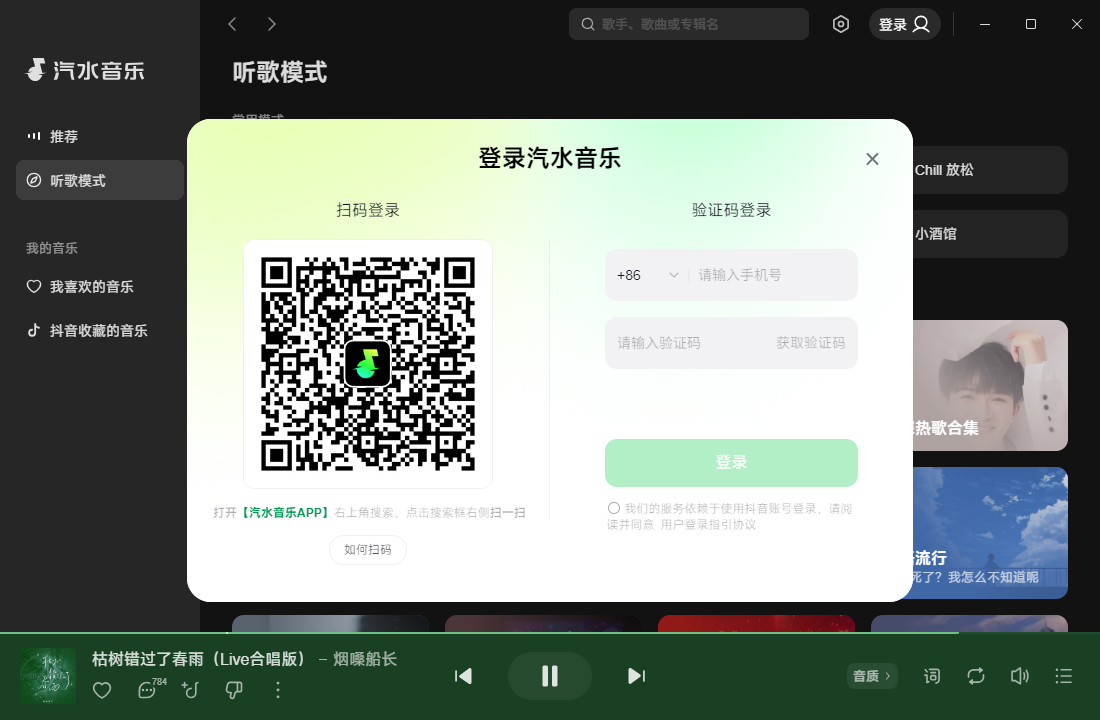 1、打开软件,使用汽水音乐App扫码登录或者手机号登录;
