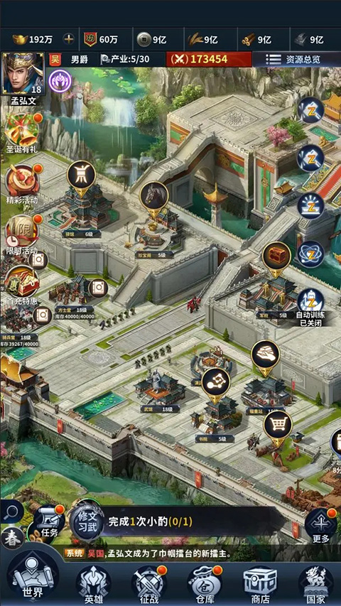 征收与建设:每日上线优先收取城池资源,升级骑兵营、科技馆等核心建筑。