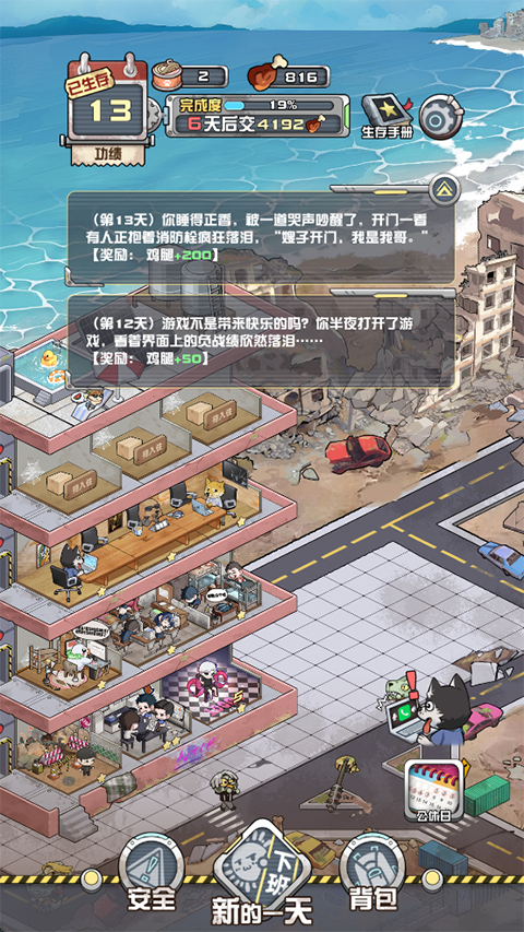 2、租客管理系统:招募各具特长的幸存者,满足他们的需求,提升忠诚度以获得特殊奖励