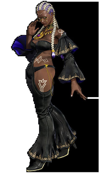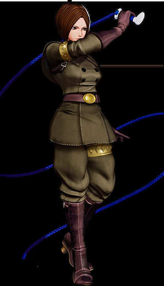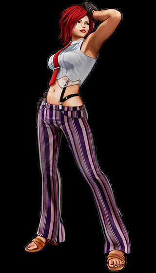 擅长用特制的鞭子「巫毒」变化自若地战斗。她的外貌与K'的姐姐仙拉有些相似。十分担心和K'闹别扭后离家出走的库拉,为了与绑架了库拉的男人接触参加拳皇大赛。