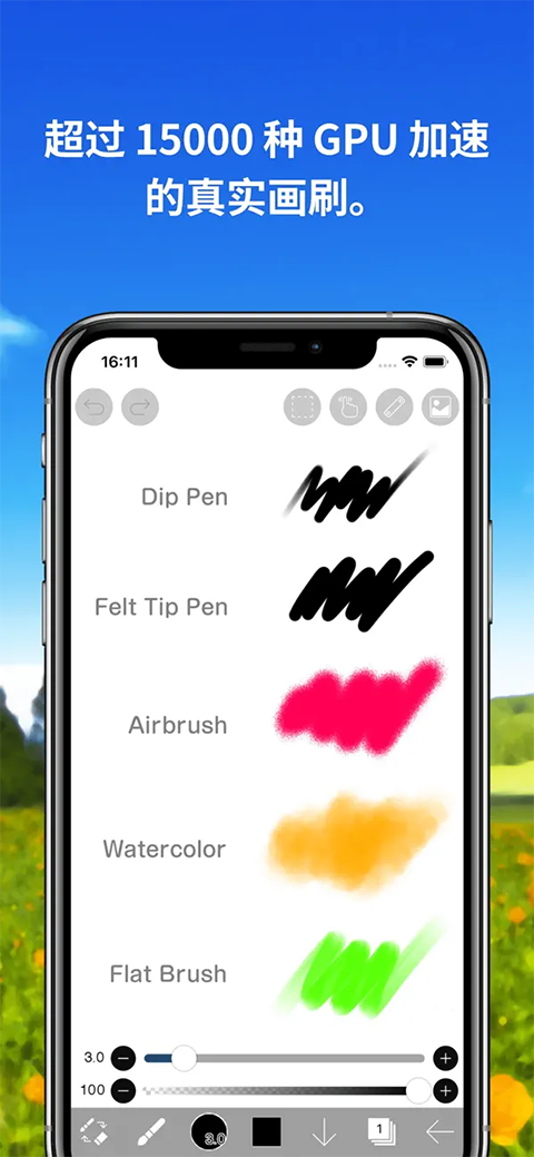 丰富笔刷库:提供超过15000种笔刷,涵盖铅笔、水彩、油画、马克笔、喷枪等各类绘画媒介