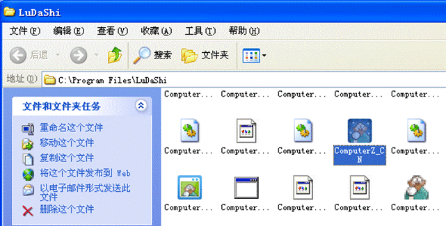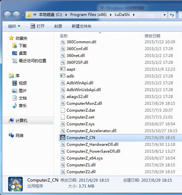④、此时就会打开你正在运行的鲁大师程序,所处的位置,并自动选中了 ComputerZ_CN.exe(部分系统可能会没有结尾的.exe字样) 文件: