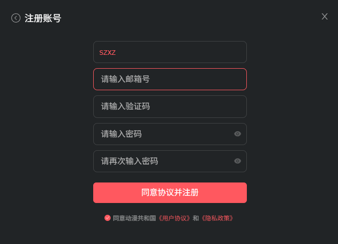 3、根据要求输入注册信息,最后点击“同意协议并注册”;
