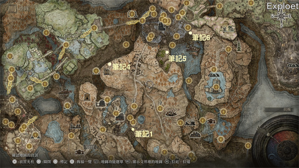 以下提供粗略位置:笔记1(幽影亚坛)笔记2(眺望镇附近)笔记3(艾拉克河下游)笔记4(幽影亚坛)笔记5(毒沼)笔记6(悬崖边)