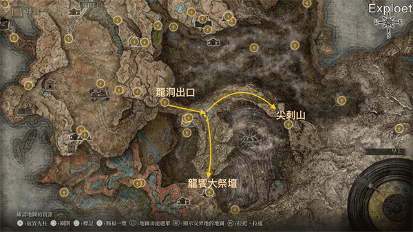 出龙洞后往前走会遇到岔路,往左是上尖刺山,往右会到达龙飨大祭坛,先到龙飨大祭坛跟龙飨女巫对话,选“我想吞下龙的力量”,对话直到重复