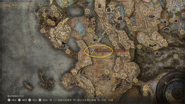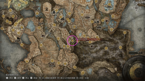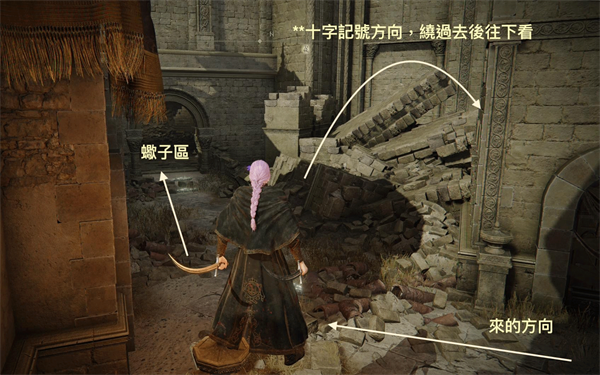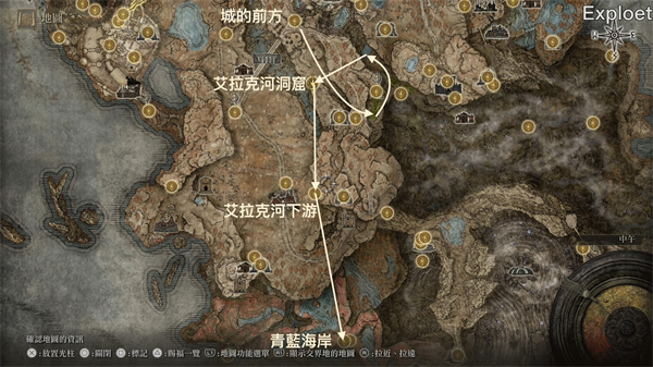 回到“城的前方”赐福,按照图中路线探索前往青蓝海岸