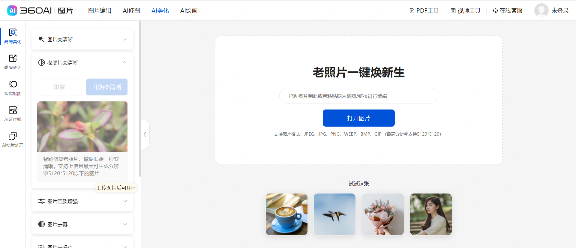高清美化老照片一键焕新生功能:可以智能修复模糊老照片的图片,一键变清晰,处理后拖动对比线即可查看原图对比效果。