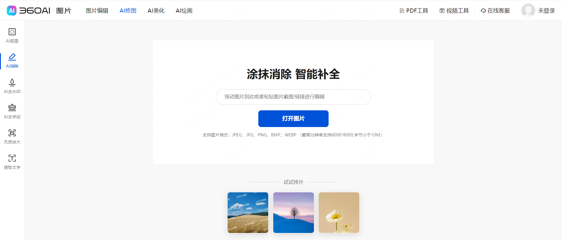 AI消除功能可轻松涂抹智能消除,在线去除一切无用元素,具体操作步骤如下: