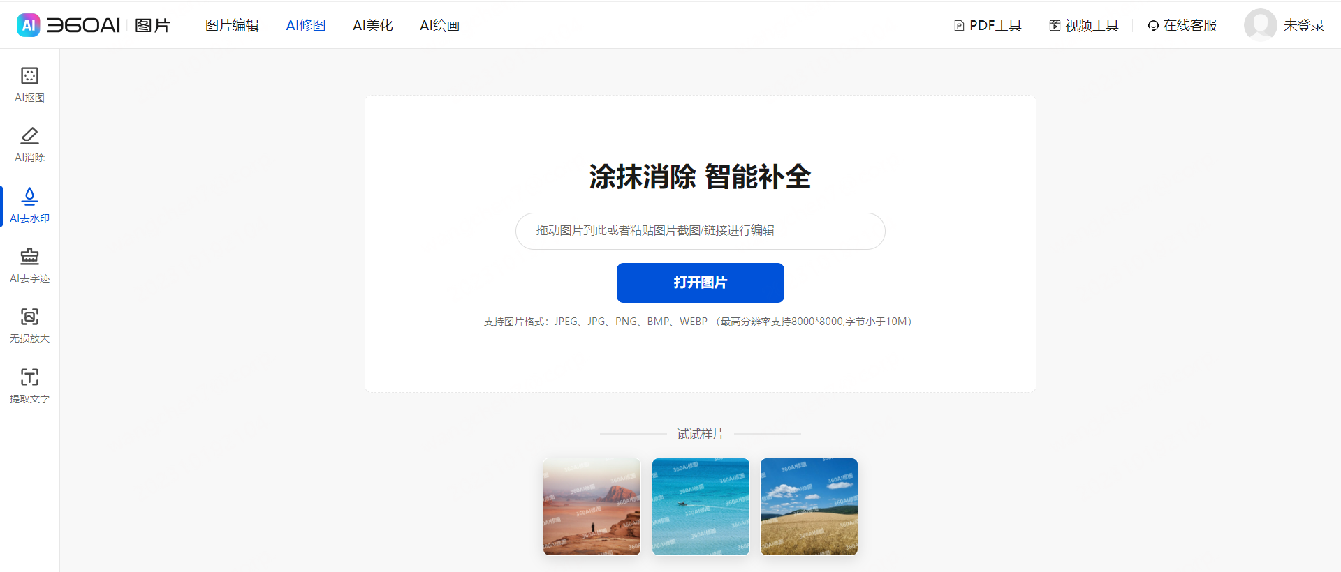 五、AI去水印功能可轻松涂抹智能消除,在线去水印,具体操作步骤如下: