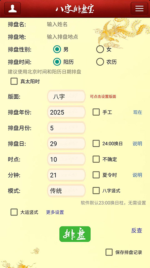 收藏与管理:排盘结果可自动保存至历史记录,方便日后查看对比。