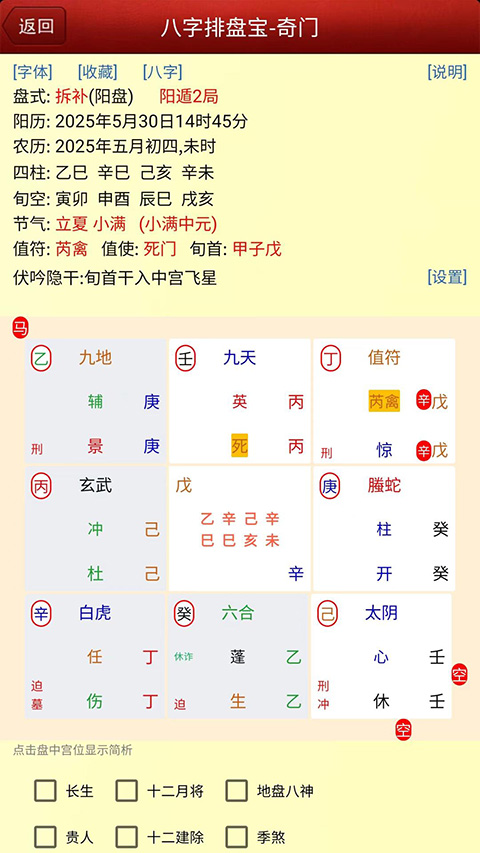 查看详情:在命盘页面左右滑动或点击标签,可切换查看大运、神煞、流年等不同板块。