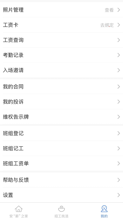 信息绑定:进入“我的项目”或“工资卡”模块,按提示添加所在工程项目信息并绑定本人银行卡。